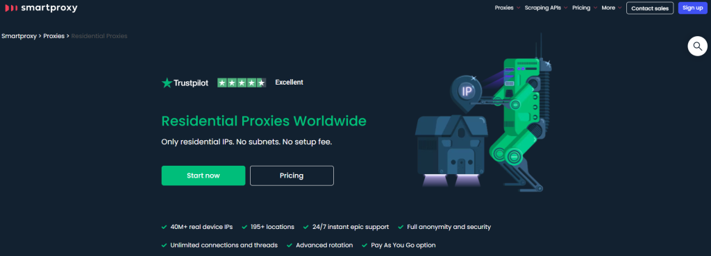 درحقیقت، رہائشی پراکسی Smartproxy کی فلیگ شپ سروس ہیں، جس کی عکاسی اس کے متنوع پراکسی پول سے ہوتی ہے جو 40 ملین سے زیادہ IPs پر مشتمل ہے۔ اسے سیاق و سباق میں ڈالنے کے لیے، یہ نمبر خود بخود Smartproxy کو متنوع رہائشی پراکسی فراہم کنندگان میں جگہ دیتا ہے۔